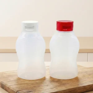 ขวดซอสทรงโบว์ลิ่ง ขนาด 200 ml สีใส มีฝา 3 สี สีขาว สีดำ และสีแดง